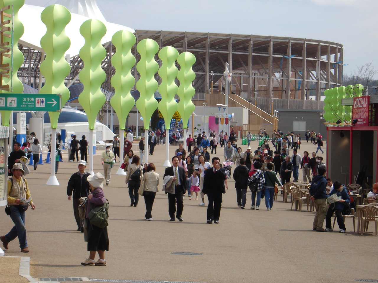 わんパク宝島へ通じる通路からメイン入口の北ゲート方向を見てみました。多くの人で賑わっていますね